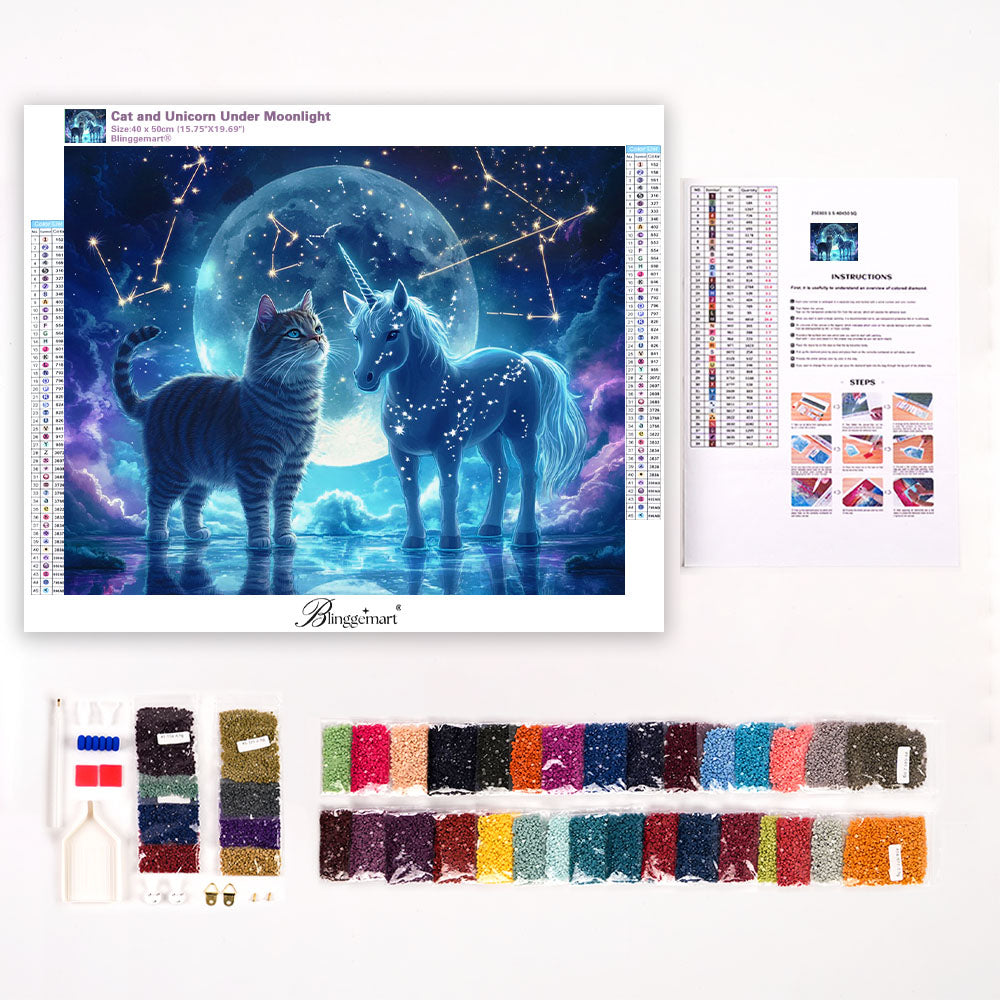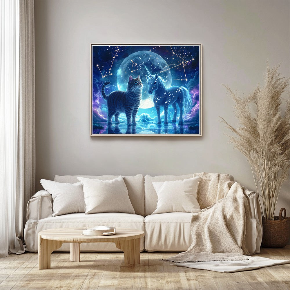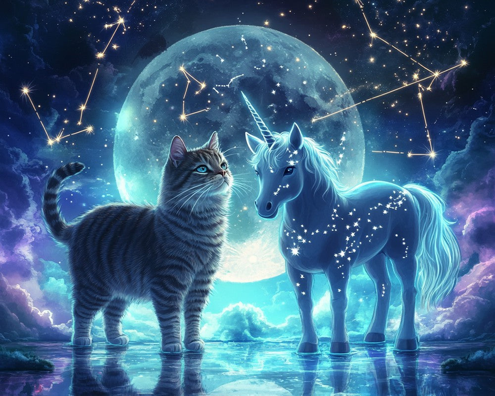 Cat and Unicorn Under Moonlight